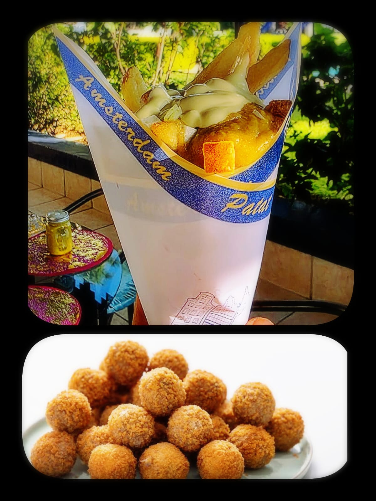 En tamaño pequeño con un costo de $ 60 pesos y un tamaño grande por $ 80 pesos En la compra de tus papas te llevaras como obsequio la apertura de un nuevo producto a probar llamado literalmente en hollandes “ bitterballen “, traducido a español croquetas holandesas redondas u albóndigas holandesas.